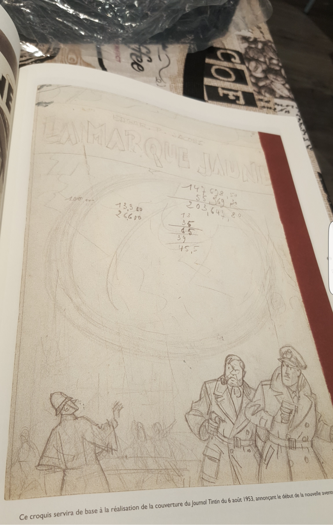 la page la plus drôle est sans aucun doute celle-ci ... le croquis préparatoire de la couverture de Marchio Giallo ... et les addition !! :D les nombres mathématiques froids deviennent de l'art! :lol: :lol: :lol: