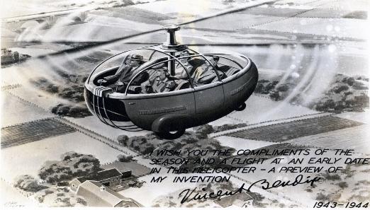 La touche finale sera fournie avec le Gyrodine « Model 2C » de 1952 qui, lorsque Bendix est racheté par Fairey, donnera naissance en 1953 au Fairey « Jet Gyrodine »… Pour la bonne bouche et pour ne pas ignorer une autre source possible, une illustration parue en 1945 dont l’image est tout de même assez frappante… Je pense, cette fois, avoir réellement fait le tour et apporté les dernières réponses au sujet...