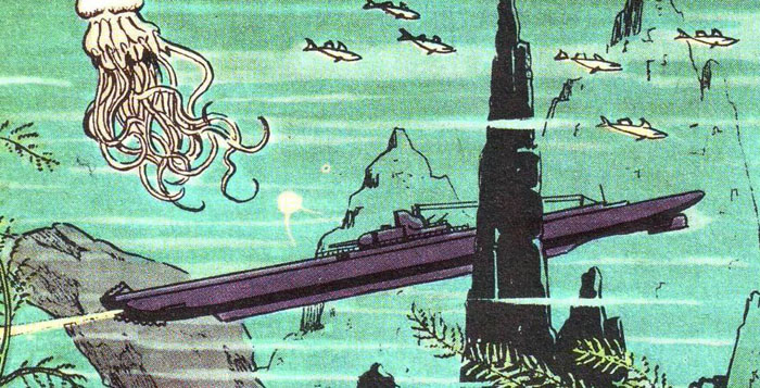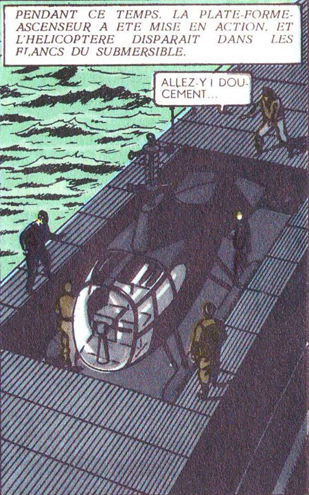 Un submersible ne peut et ne pourra vraisemblablement jamais embarquer un appareil dans ses flancs suite à plusieurs contraintes techniques incontournables que Jacobs, en libre créateur, a purement et simplement balayées d’un coup de gomme…