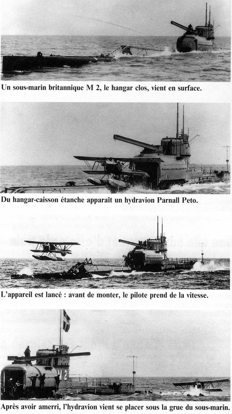 Ces deux types de sous-marins emportaient dans un hangar circulaire collé sur le pont du submersible, formant la base du kiosque un hydravion ailes démontées.