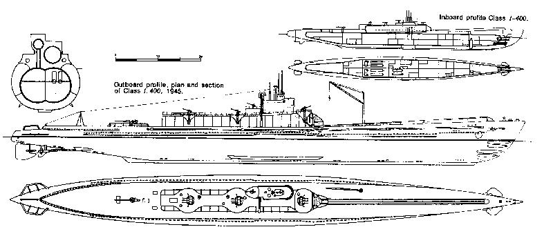 Et deux, de ce sous-marin, il n’exista jamais que 3 unités, les I-401, 402 et 403 (embarquant 3 hydravions M6A1 « Seiran ») qui ne prirent pas réellement le service à la mer et furent récupérés dans le plus grand secret par les Américains en 1945 qui pensaient y voir une belle opportunité… Le I-400 fut coulé au large d’Hawaï par les Américains eux-mêmes ; quant aux I.404 et I-405, ils ne furent jamais terminés