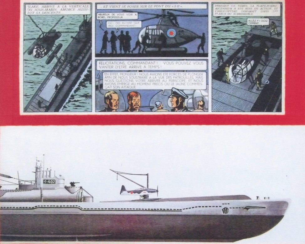 Des visuels dessinés par Jacobs, il est clair que le « S II » est issu du « croiseur sous-marin » Surcouf, très reconnaissable avec son kiosque et ses deux canons… ainsi que des U-botes, là encore facilement reconnaissables à leur proue très particulière…