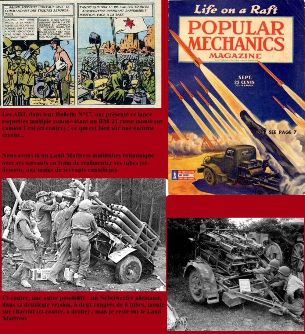 Sur la plage qui (est sensée faire) fait face au rocher isolé de "B.S", les Jaunes ont installé des batteries mobiles de lance-roquettes que les ADJ, dans leur Bulletin N° 16 ou 17, ont maladroitement mis en comparaison avec une couverture de Popular Mechanics montrant des batteries de BM-21 russes montées sur camions Ural...