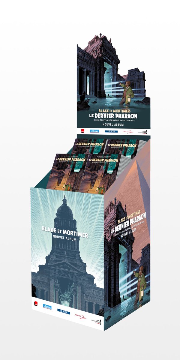 :o Il ne fait aucun doute que ce luxueux présentoir ultra graphique, nimbé d'ésotérisme - où se détachent sobrement mais nettement les noms de nos héros et ce "Dernier pharaon", évocateur de mystères et de pyramides ;) - saura attirer irrésistiblement tous les regards...