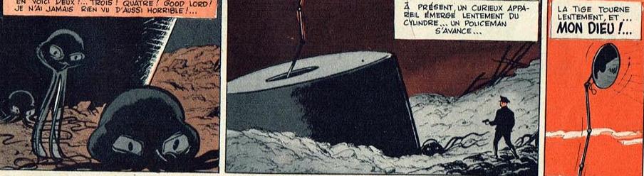 N'hésitez pas à les découvrir, et vous verrez que, plus que très certainement, Albert Weinberg avait revu les illustrations de La Guerre des Mondes de l'ami Edgar.
