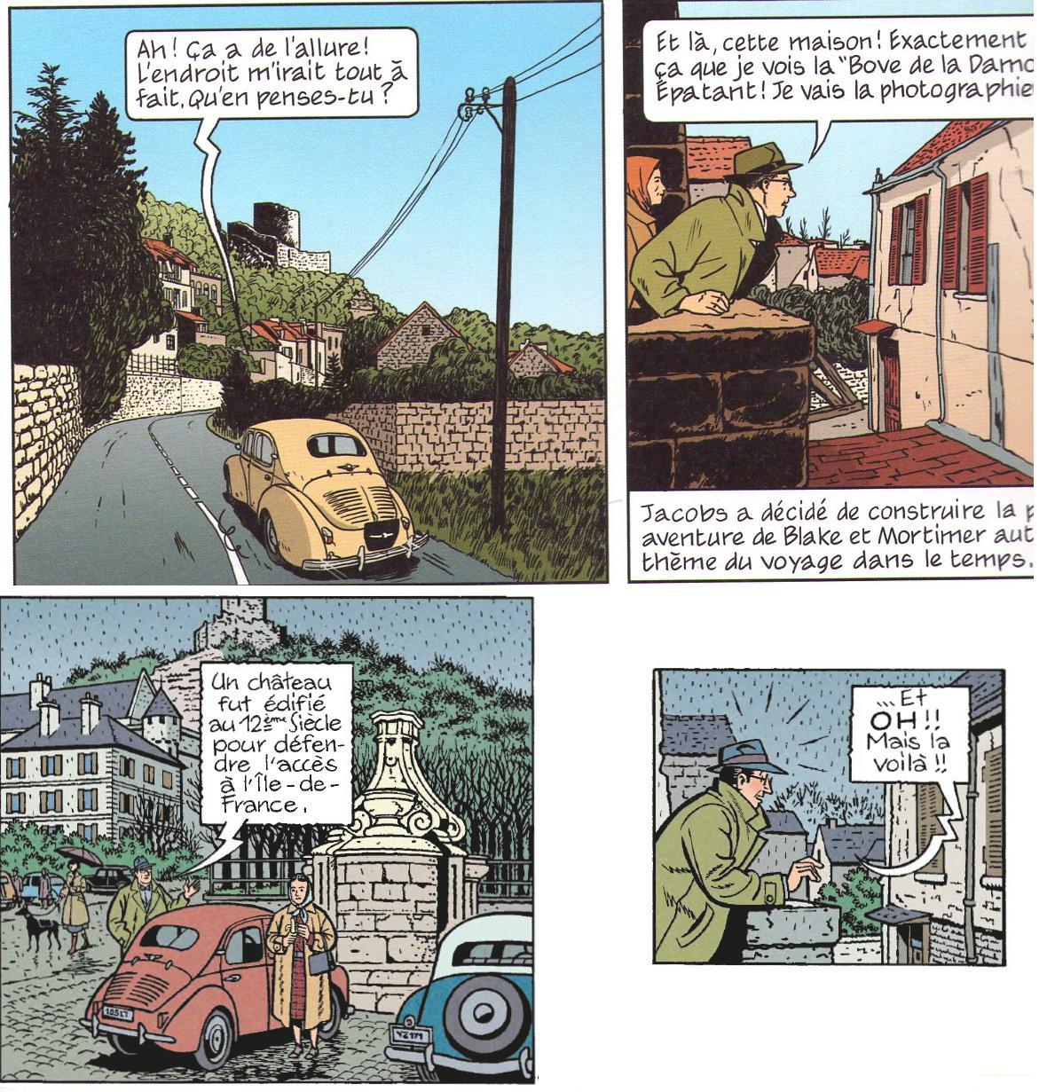 Dans sa biographie co-écrite avec Benoît Mouchart, François Rivière précise que ce repérage s'est déroulé "à l'automne - saison choisie par lui à dessein, afin de recréer une ambiance angoissante (...)", insistant sur "l'atmosphère insolite de la bourgade" appréciée par Jeanne et Edgar.Edgar P. Jacobs a écrit :(...) la belle saison venait de se terminer, et plus rien ici ne rappelait la joyeuse animation décrite dans le guide, les hôtels et restaurants avaient fermé boutique. Les ruelles étaient désertes et les vieilles demeures silencieuses. Exactement l'ambiance que je souhaitais.