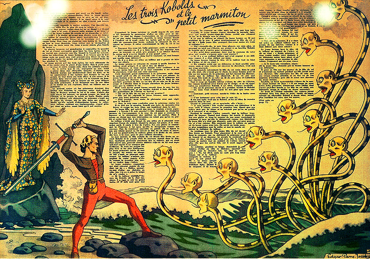 Autour d'un fragment évoquant une illustration fantastique - dans tous les sens du terme - réalisée pour le journal "Bravo !", on constate que Jacobs prend enfin plaisir à dessiner et à exprimer son vrai tempérament d'Artiste audacieux et perfectionniste. Il apparaît aussi que cette étape est cruciale pour lui en tant qu'échappatoire, à la fois dans le travail et dans un imaginaire puissant, nourri de mythes et d'épopées romanesques.