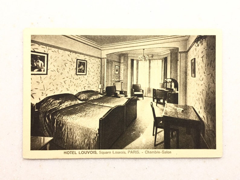 Les chambres de l'Hôtel Louvois ont été modernisées . Il y a la radio et le téléphone qu'il n'y avait certainement pas à l'époque de la carte postale vue précédemment. :p