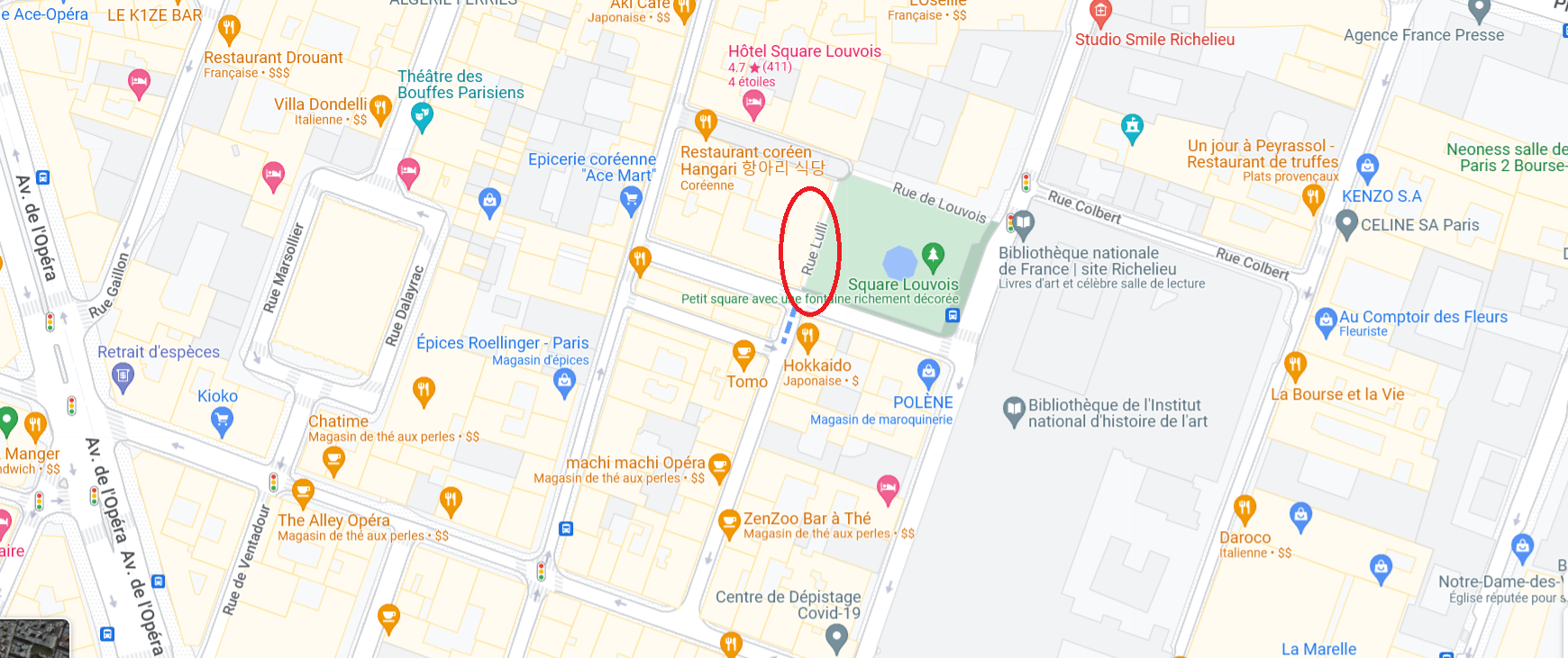 Cet hôtel n'existe plus en tant qu' hôtel, mais le bâtiment est toujours là , rue Lully et donne sur le square Louvois.