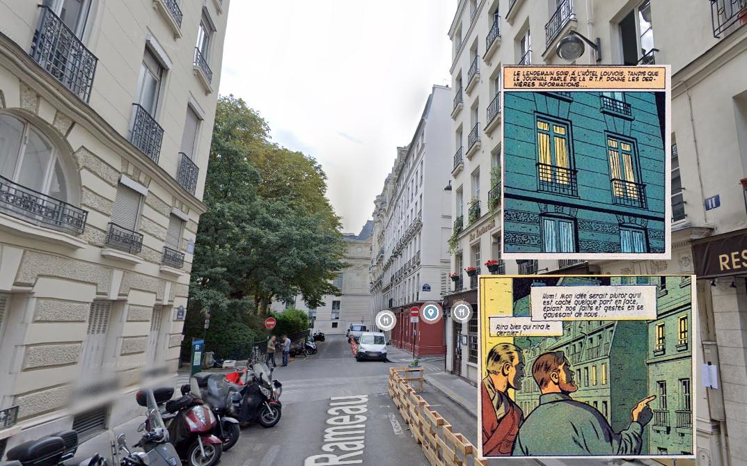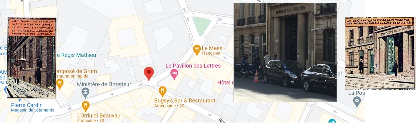 Quittant la rue des Saussaies Blake et Labrousse , inquiets de la disparition de Mortimer, vont se rendre à Jouy en Josas. Auparavant, ils font une étape à l'appartement du professeur Labrousse , rue de Vaugirard, en passant par la rue Bonaparte.