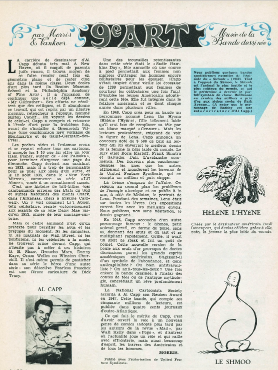 Voici comment Morris nous présentait cet auteur dans la rubrique "9EME ART" du Journal Spirou qu'il animait avec Vankeer.