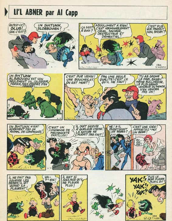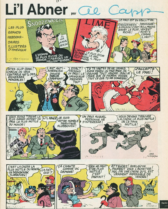 Finalement, ce dessinateur-mystère n'aura pas gardé longtemps son anonymat, puisque plusieurs d'entre vous ont découvert qu'il s'agissait d'Alfred Gerald Caplin dit Al Capp et de sa série Li'l Abner.