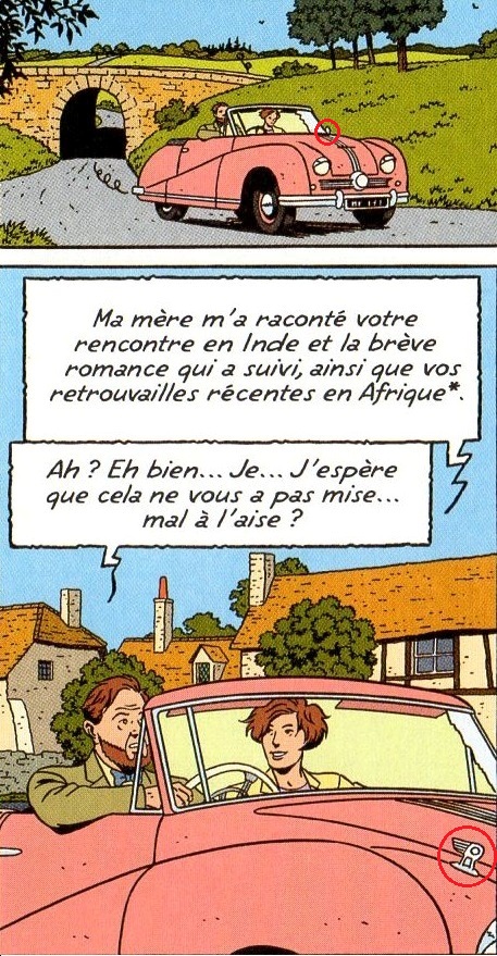 Dans la case 1, planche 30, on voit bien la "mascotte du capot de l'Austin "Atlantic" centrée sur le haut du capot