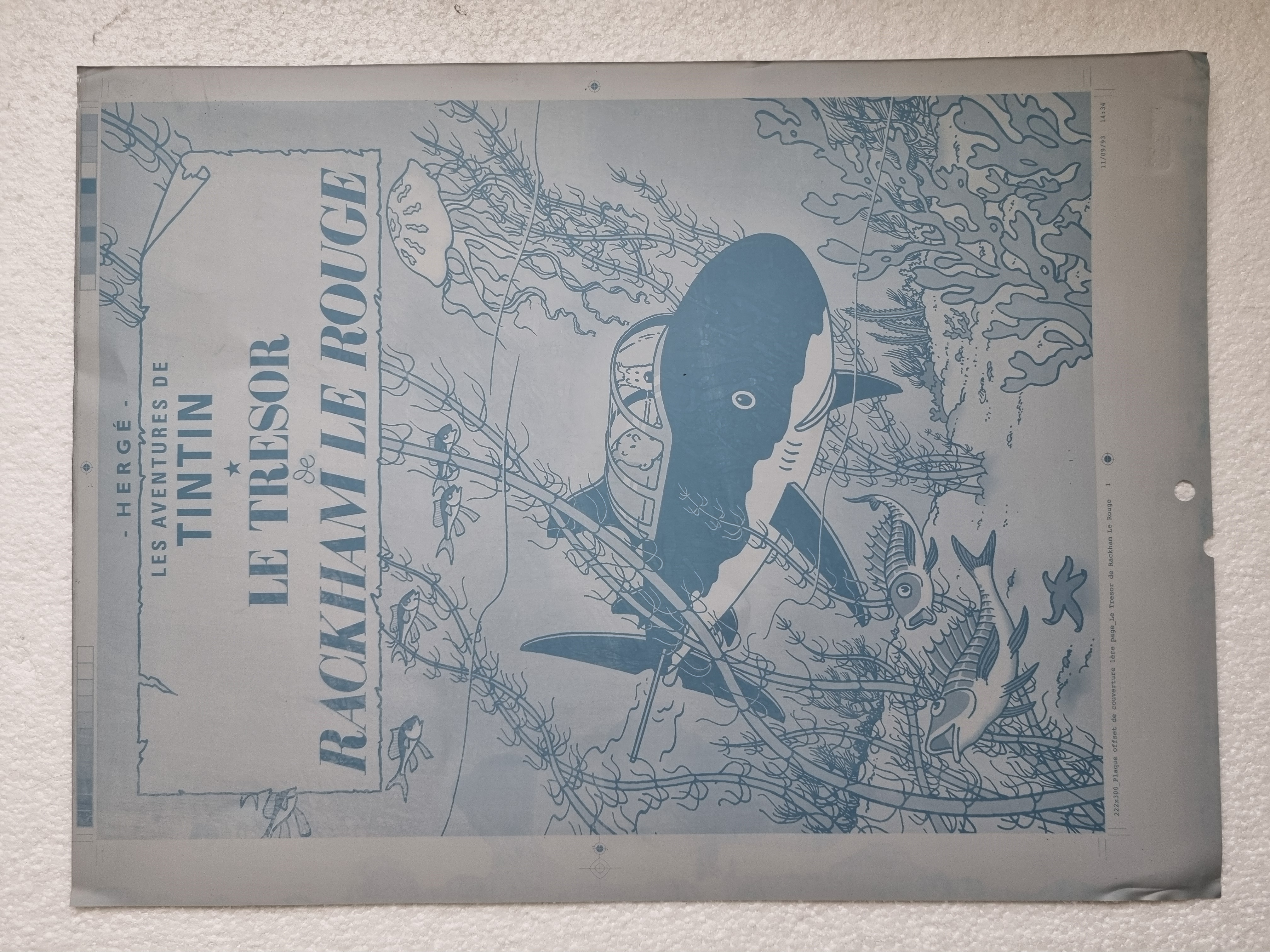 Plaque d'impression en zinc (planche offset) pour la couverture du Trésor de Rackham Le Rouge, année 1993 :