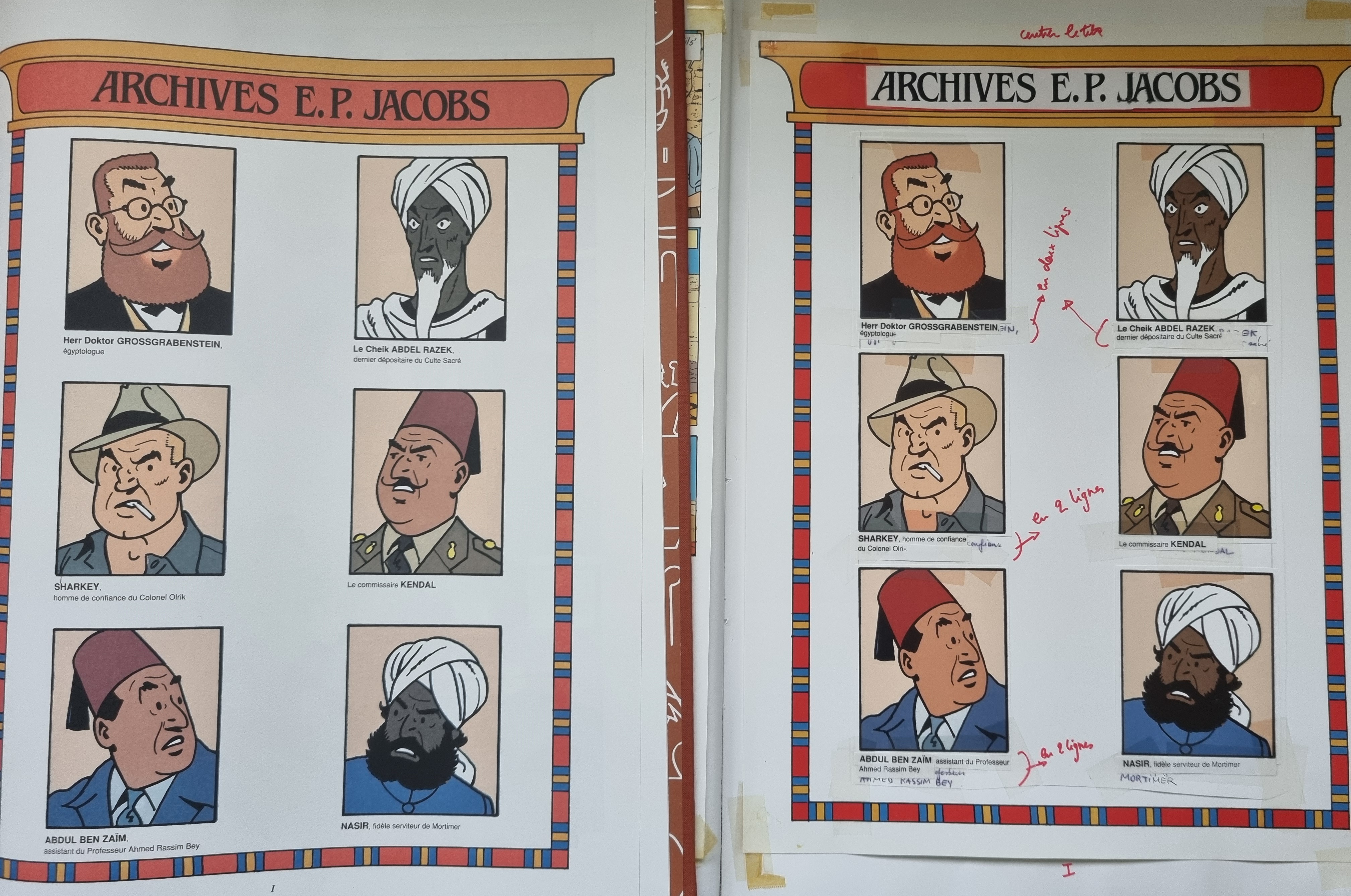 Sur la page des personnages, il y a des rajouts en papier sur la page
