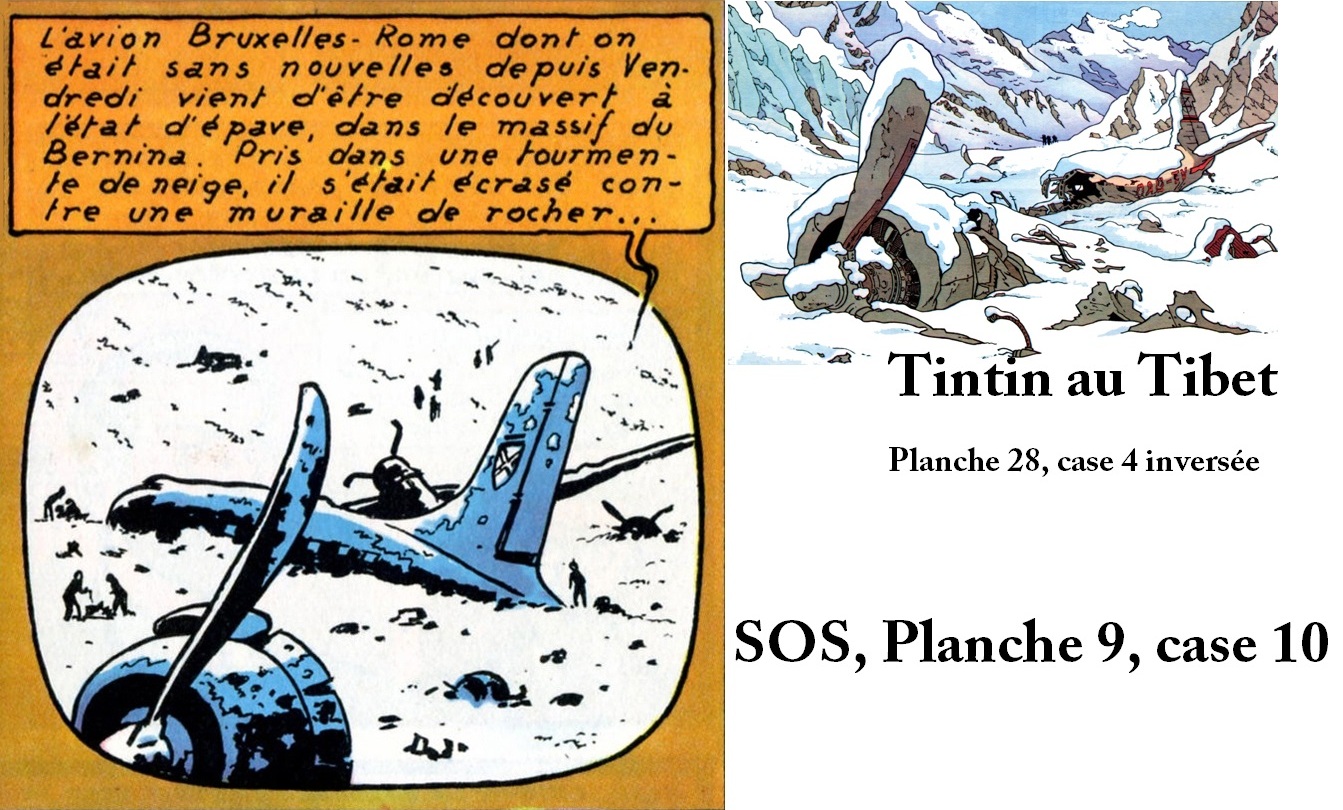 Là, Jacobs n'est pas allé cherchr dans les magazines de l'époque, mais a tout simplement "emprunté" à son ami Hergé une case de Tintin au Tibet, qu'il a habilement retournée pour la reproduite quasi à l'identique...